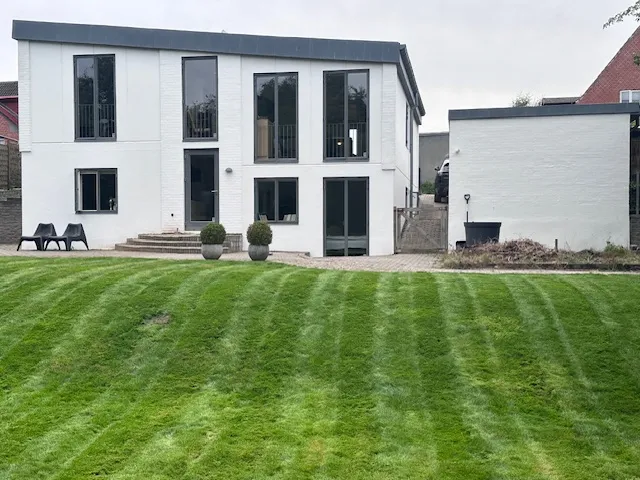 Ovenlysvinduer og store vinduespartier sikrer en meget lys villa med et meget lavt varmeforbrug.