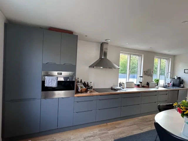Stort køkken/ alrum med Invita elementer med helt nye fronter. Stor SMEG ovn, ALKO opvaskemaskine, nyt køle/fryseskab.