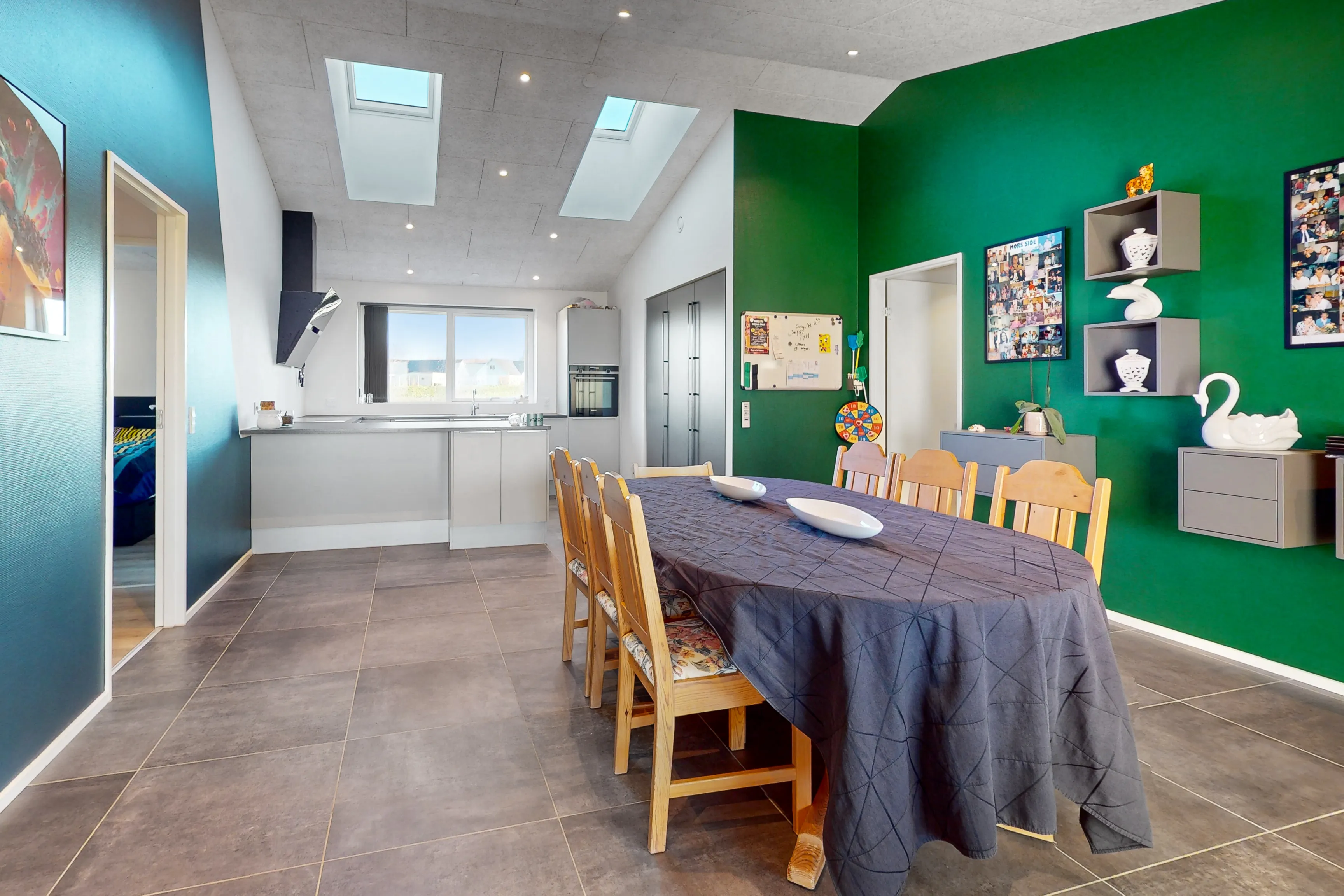 Huset byder på et dejligt åbent køkken-alrum. Dette åbne layout skaber en lys og indbydende atmosfære, perfekt til både afslapning og underholdning. Det er et sted, hvor familien kan samles og nyde kvalitetstid sammen.