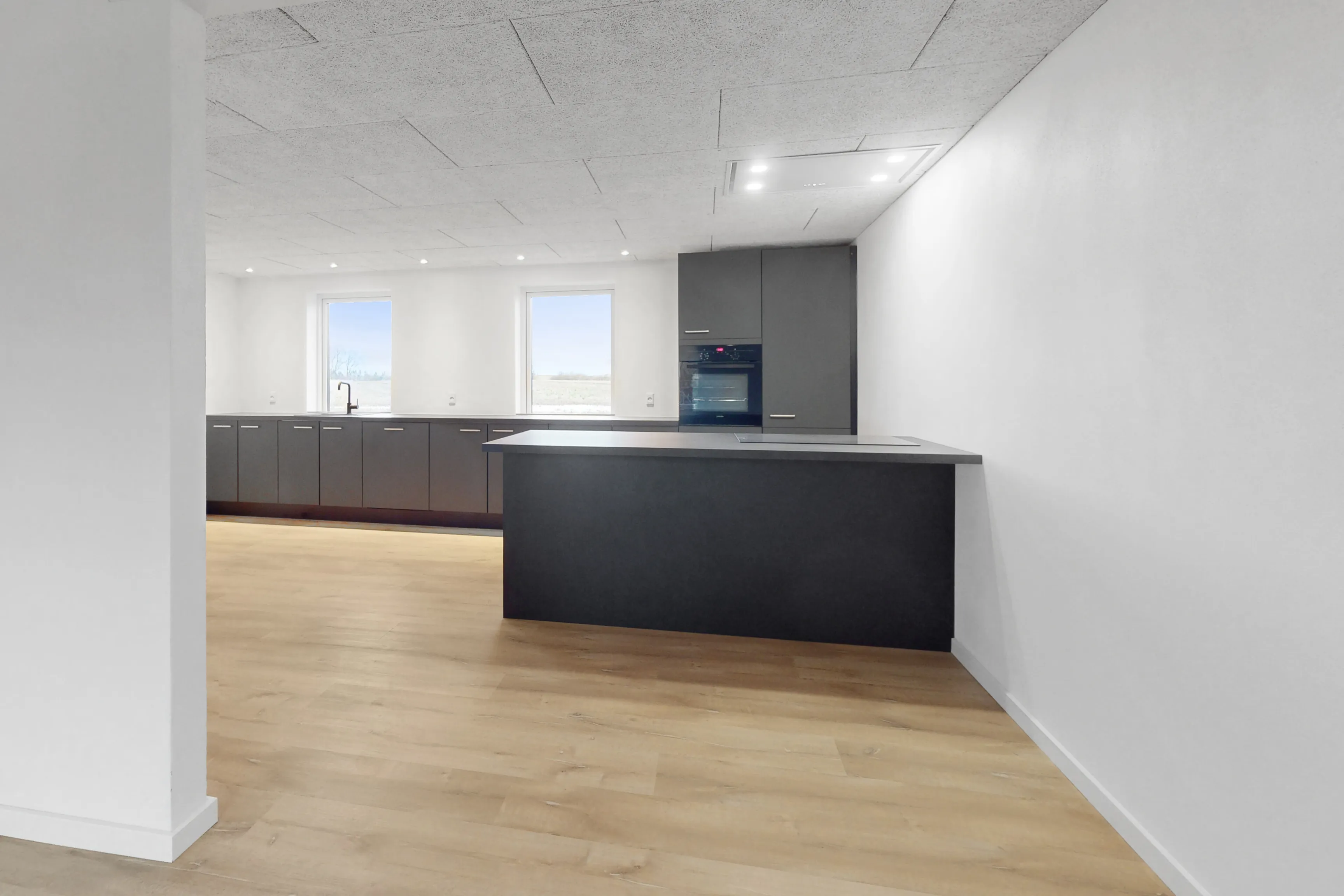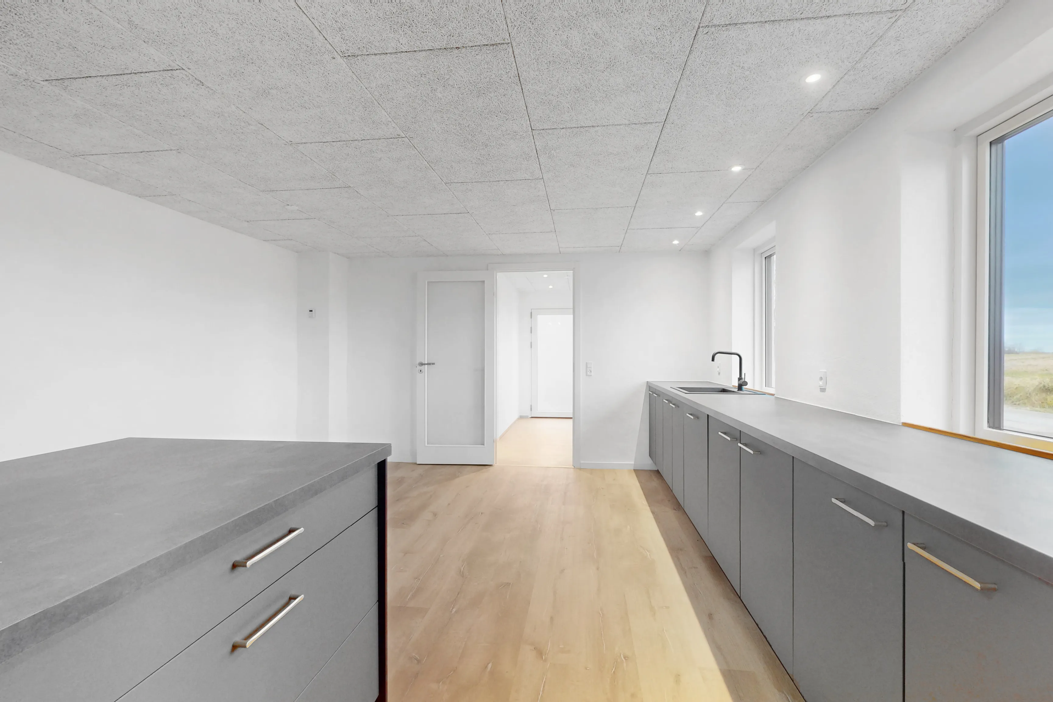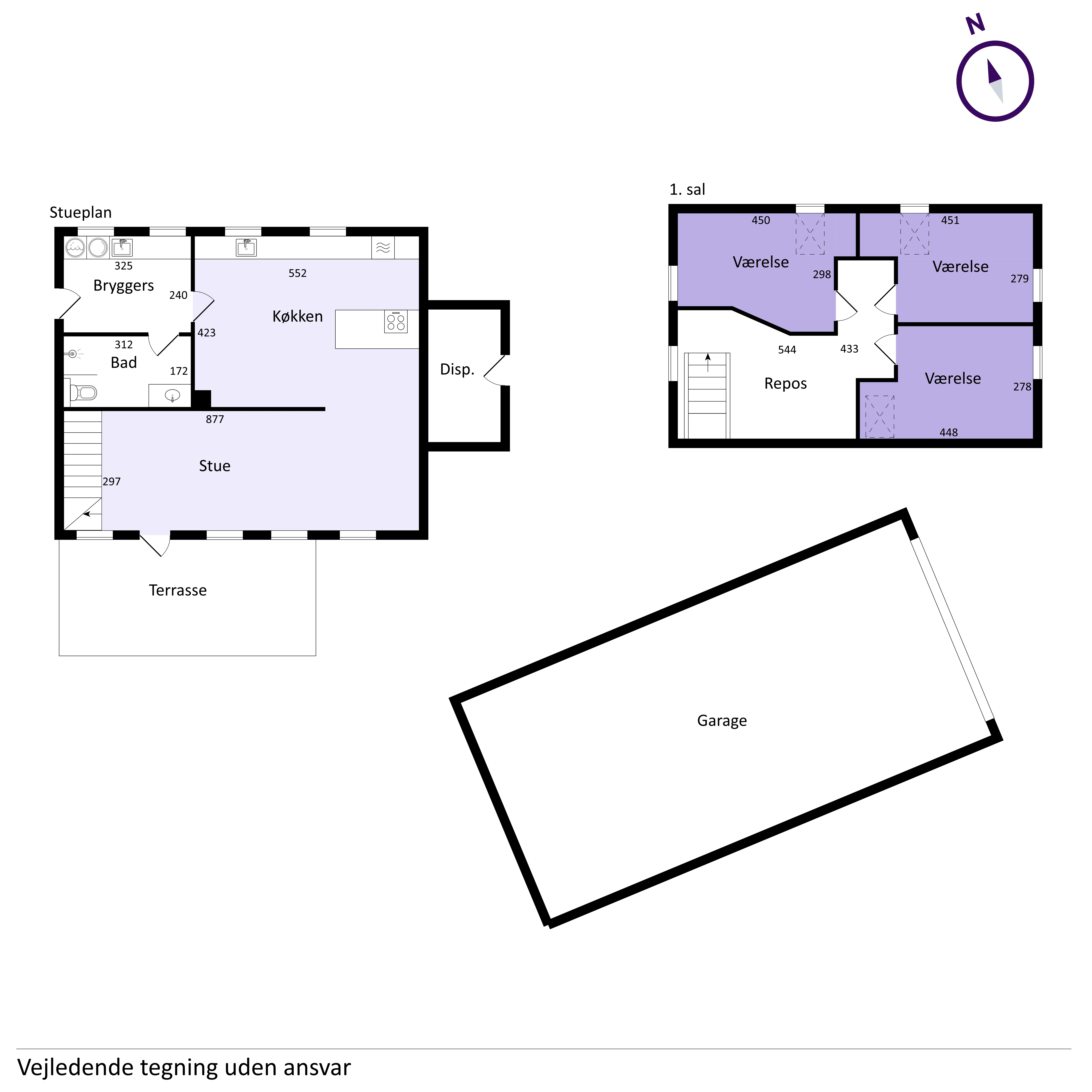 Når du træder ind i huset via bryggerset, finder du en praktisk adgang til badeværelset, der er moderne og funktionelt indrettet. Det åbne køkken-alrum er hjertet i hjemmet, hvor det stilfulde køkken smelter sammen med stuen, og skaber et indbydende rum til både hverdag og fest. Herfra er der direkte adgang til terrassen, hvor du kan nyde de lange sommeraftener. Huset byder på tre gode værelser, der alle er placeret på første sal, hvilket giver en ideel opdeling mellem privatliv og fællesområder.