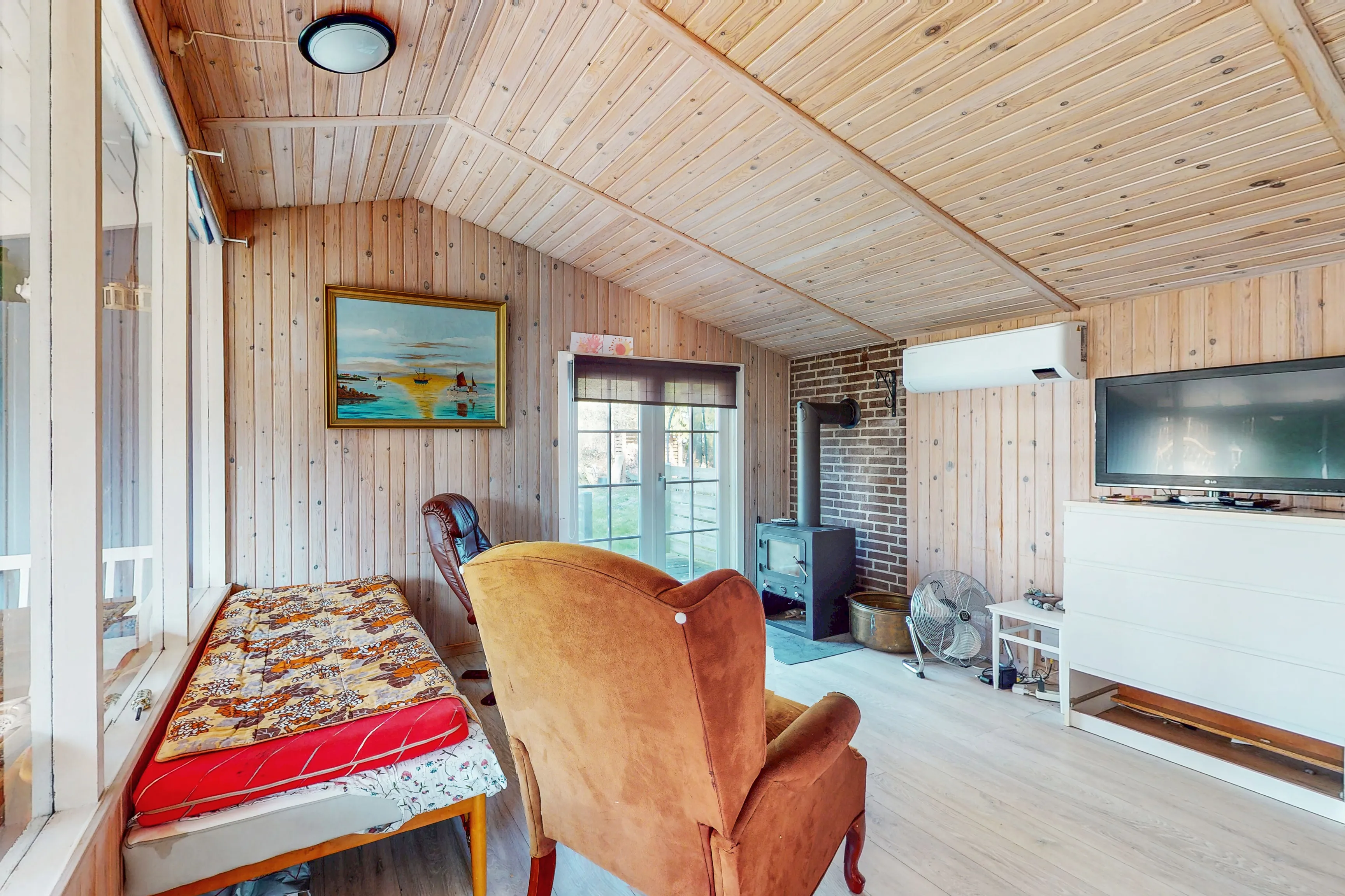 Huset byder på 48 m² funktionelt boligareal, der er perfekt til afslapning og hygge. Den åbne køkkenafdeling med spiseplads glider naturligt over i stuen, hvor du kan nyde varmen fra brændeovnen eller blot slappe af i sofagruppen. Fra stuen er der direkte adgang til en vestvendt træterrasse, hvor du kan nyde de lange sommeraftener med en kop kaffe i hånden. Badeværelset er nydeligt indrettet med brus, og huset opvarmes effektivt med varmepumpe, brændeovn eller elvarme.